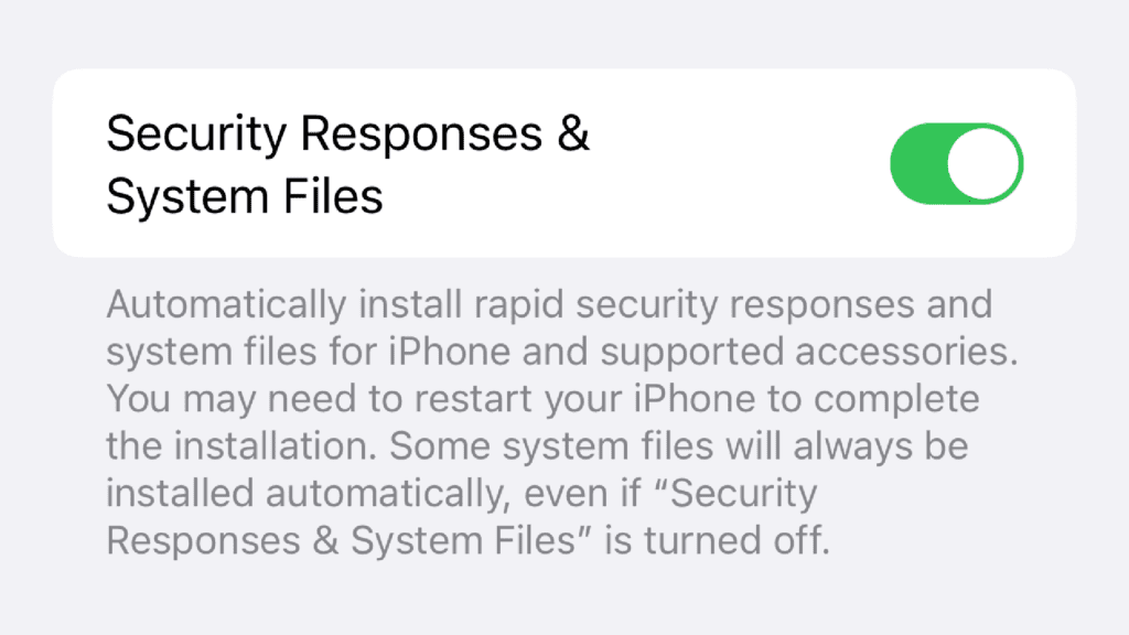 Fortunately, with iOS 16, users can install security updates without having to update their entire OS. Under previous operating systems, like iOS 15, security updates were dependent upon entire iOS updates. Now, iPhone users can expedite the process. To take advantage of this feature, navigate to Settings > General > Software Update > Automatic Updates and toggle Security Responses & System Files on.