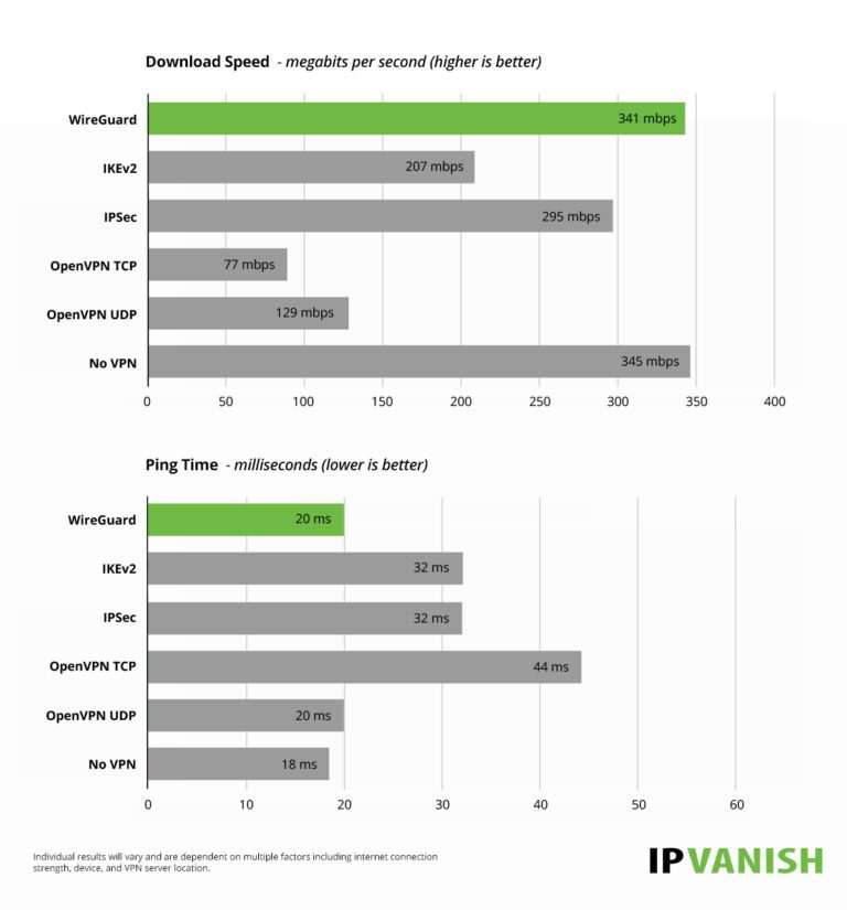 WireGuard addresses many of the flaws in OpenVPN. The new protocol is lauded by security experts worldwide and is the default connection type in all new IPVanish installations. It’s much faster than OpenVPN, consuming less battery while remaining even more secure due to its smaller attack surface. WireGuard connections are also more reliable, especially for mobile users, as they can handle network changes better than OpenVPN.